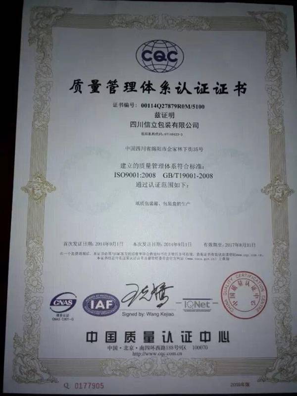 包装质量管理体系认证证书